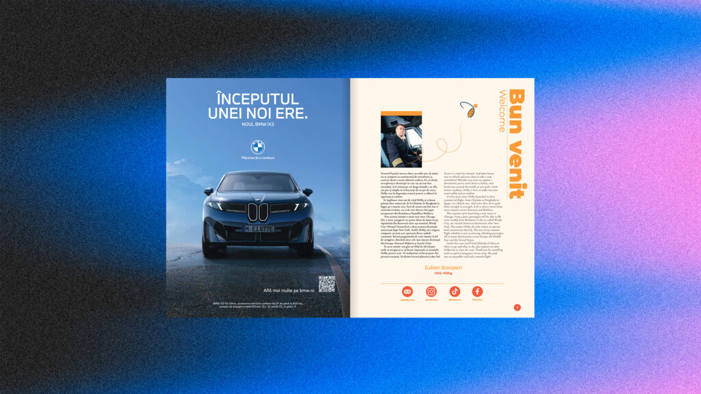 From authentic storytelling in Romanian and English to targeted print advertising, we help HiSky connect with 2.3m+ passengers annually via its inflight magazine.